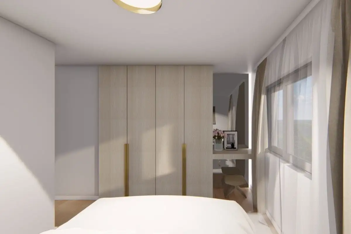 The exterior windows and doors are made from profiles of renowned brands (Aluplast, Kömmerling, Rehau, Gealan or Veka), with triple-glazed argon-filled IZO glass, mosquito screens, and electric aluminum shutters. Entrance doors to both the building and the apartment are by Hörmann – security, fire-resistant, soundproof, thermally insulated, and equipped with the option of electronic access.