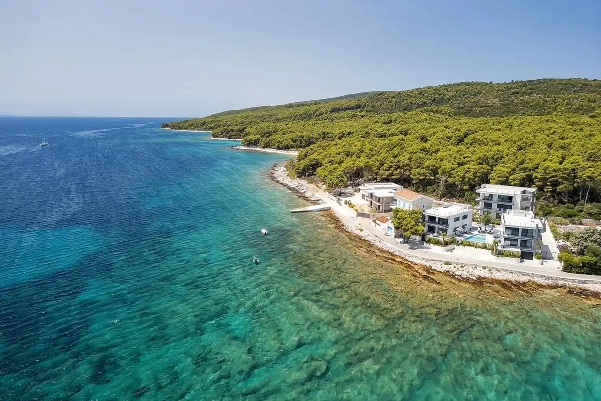 We offer for sale a modern apartment with breathtaking views in the first row by the sea. The property is located near the village of Sućuraj on the island of Hvar in Croatia. Thanks to its southern orientation and combination of comfort, elegant design, and modern Italian interior, it is the ideal place for a luxurious Mediterranean vacation.