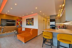 The penthouse is offered fully furnished with high-end furniture and appliances. It features full air conditioning and underfloor heating, ensuring year-round comfort. The building includes a shared swimming pool, and the property comes with one outdoor and one garage parking space.