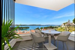 This newly built, design-forward penthouse apartment is located on the top floor of a modern boutique building in a quiet, elevated part of Čiovo, just minutes from the historic town of Trogir and 210 metres from the sea. Combining Mediterranean elegance with contemporary comfort, it offers breathtaking views, premium materials, and a private rooftop sanctuary.