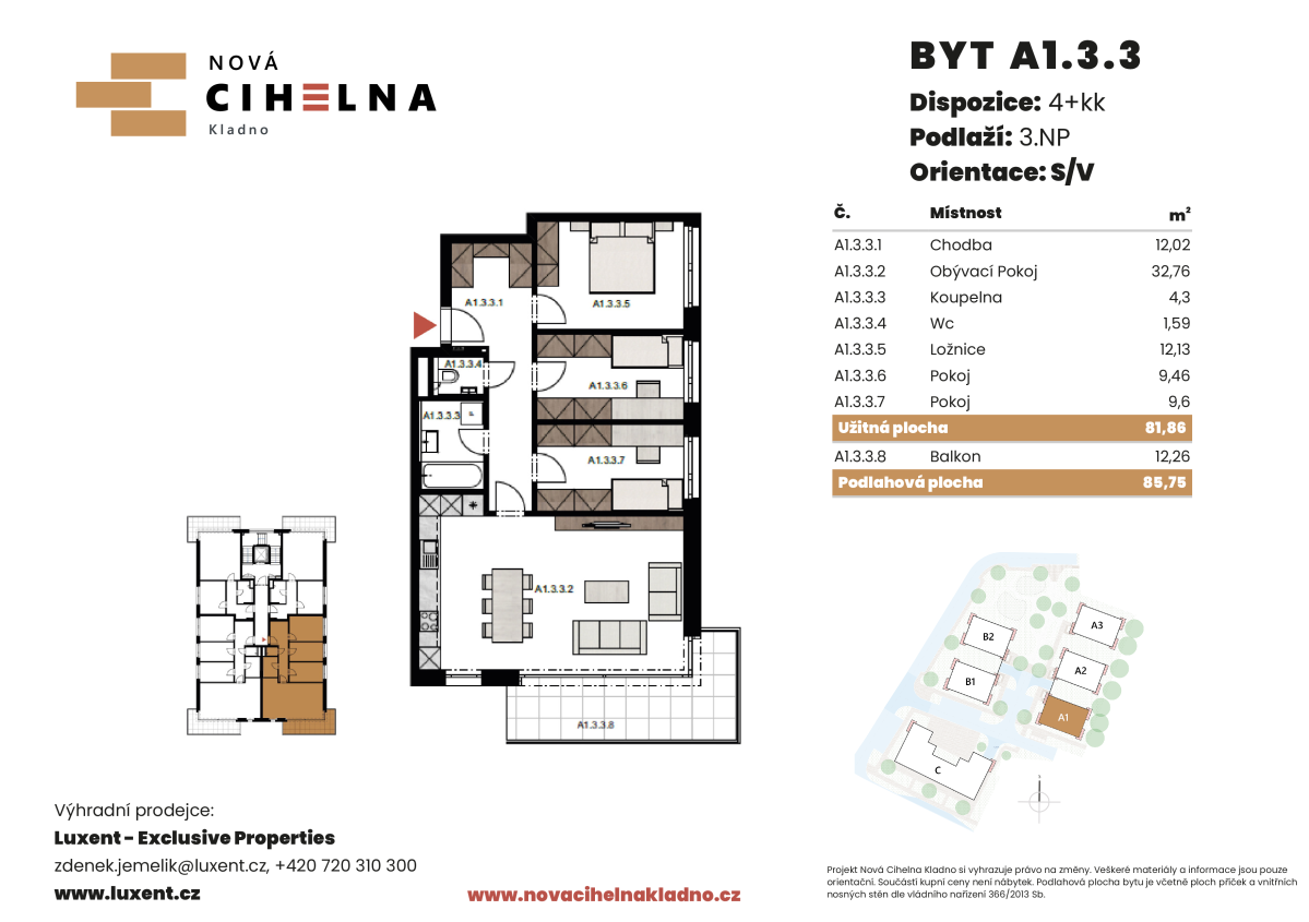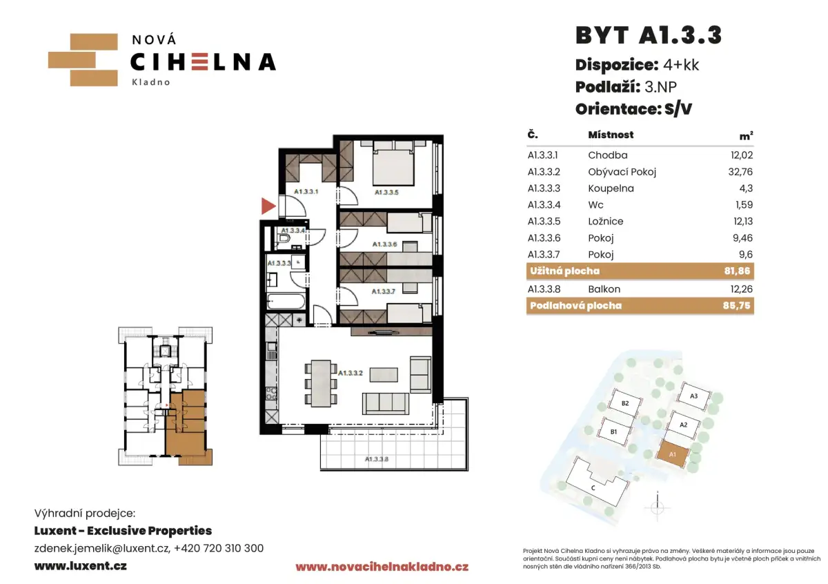 | NC-A323 | 3 + kitchenette | 1st floor | 73 m2 | 76 m2 | No / 12 m2 / No | No | Reserved | Detail |