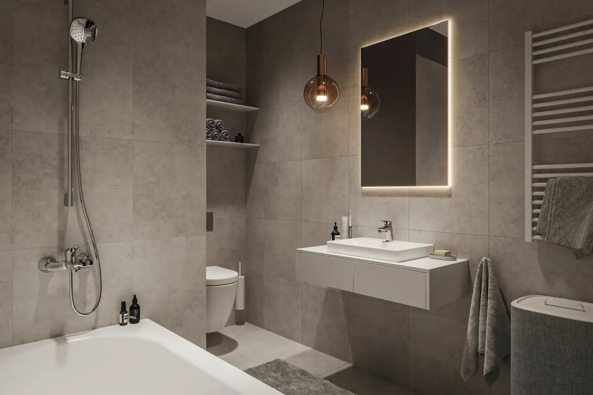 Vinyl mineral floors (wooden floors as an extra standard), designer tiles and ceramic tile in a choice of several decors. The project offers superior and sustainable materials, with bathroom fittings by Villeroy Boch, Hansgrohe. The main focus is on originality, functionality and aesthetics. The entire complex is adapted for wheelchair access, including elevators.