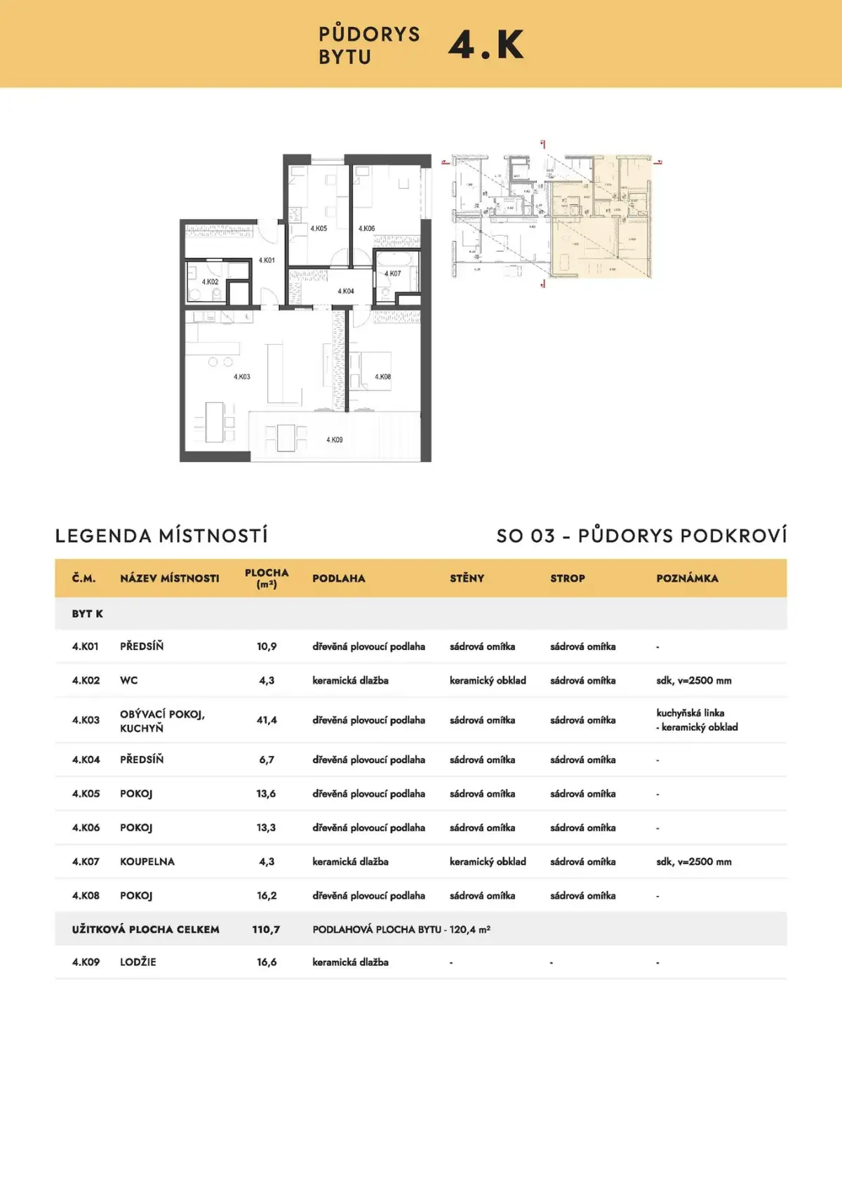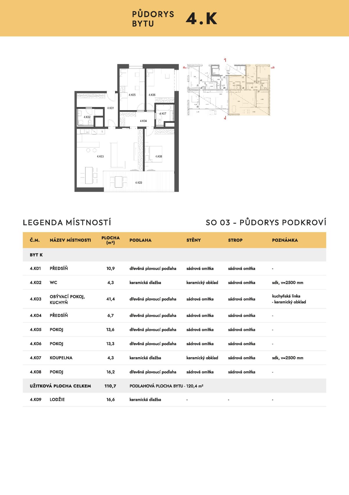 | NB-A4K | 4 + kitchenette | 3rd floor | 111 m2 | 120 m2 | No / No / 17 m2 | No | 15 700 000 CZK | Detail |