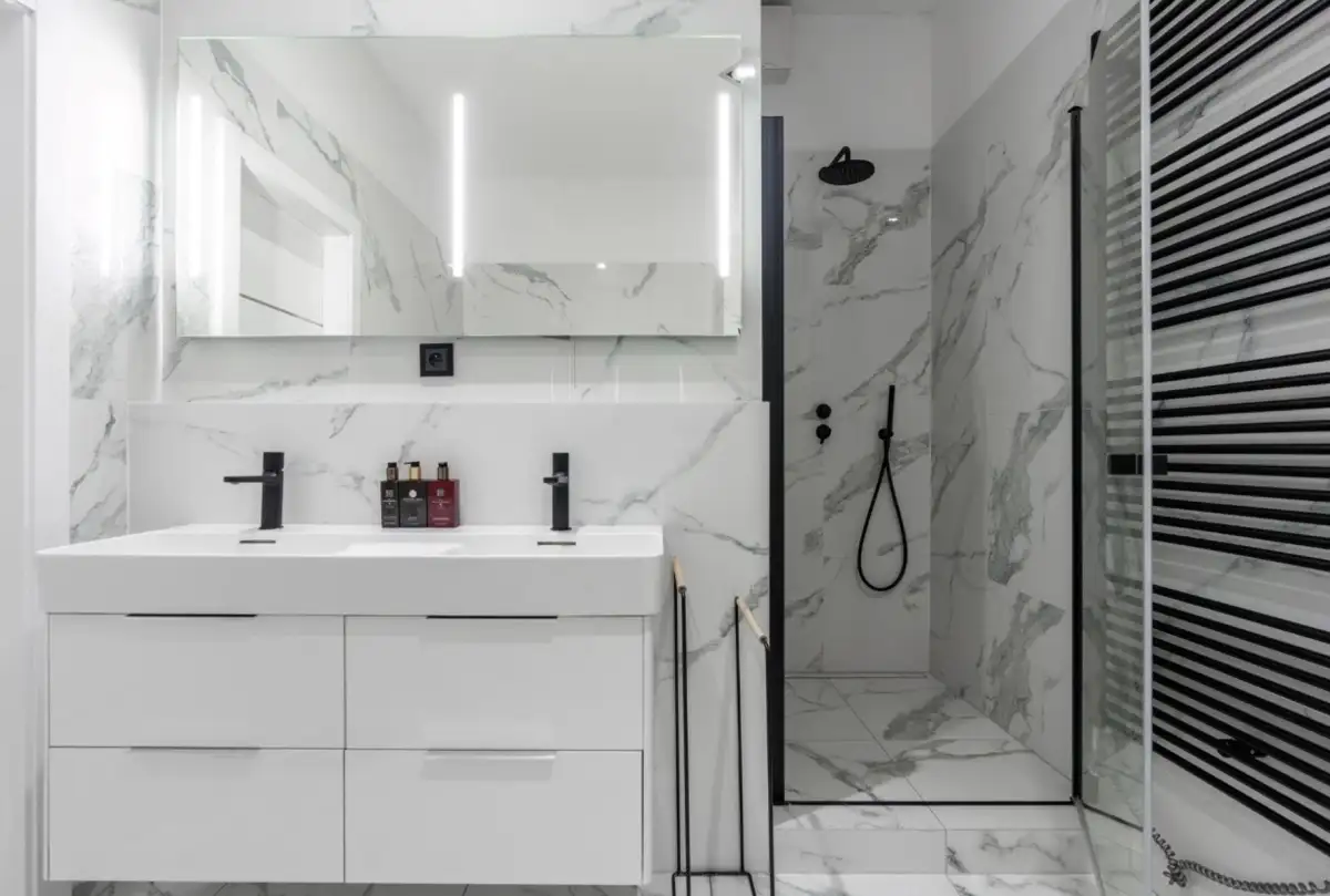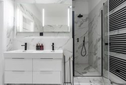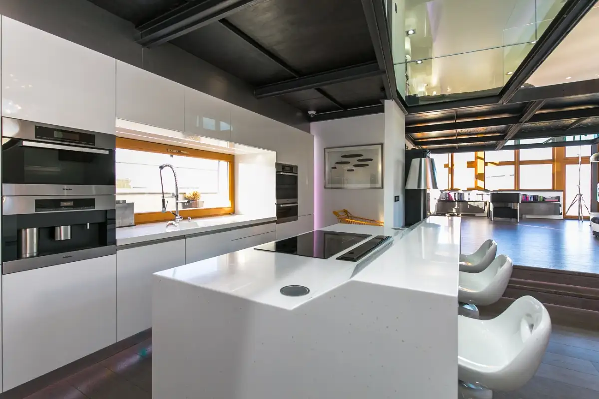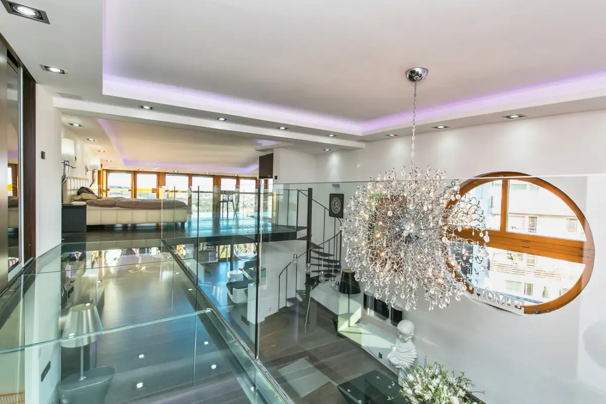 Operation of the apartment provides a smart home system Haida - security system, LED lighting including creating a color backlight, heating, air conditioning and blinds with remote control. Floating wooden floors and tiles, security doors, alarm, video surveillance system and a Bose sound system and Bang Olufsen. The apartment has 2 parking spaces included in the price.