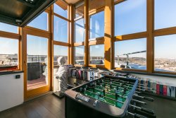One of the terraces faces north, it includes a gym, shower, a solarium and jacuzzi. The second terrace is facing south and there is a seating area with a summer kitchen and barbecue.