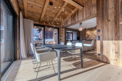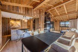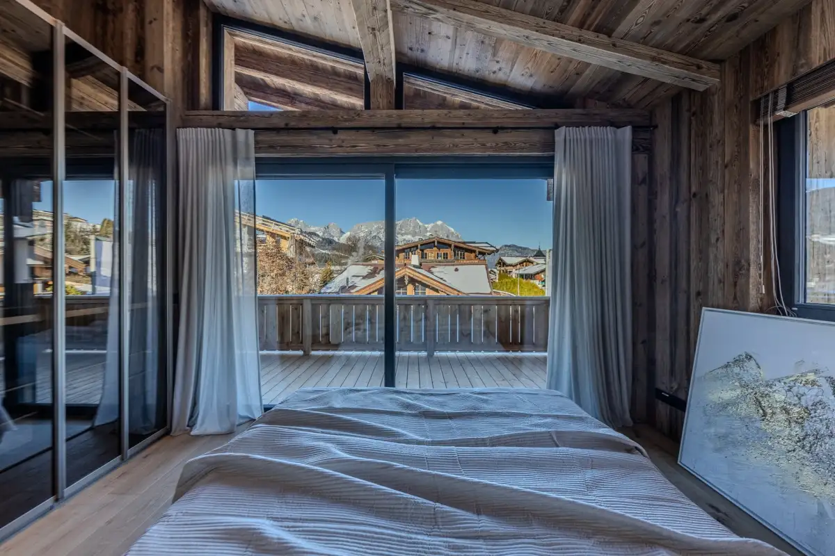 The penthouse is spread over two levels. On the ground floor, you will be welcomed by an elegant entrance hall and two bedrooms, each with its own en-suite bathroom, ensuring complete privacy and comfort for family or guests. High-quality materials, including rustic oak floors, emphasize the luxurious character of this home. On the upper level, you'll find an open-plan living and dining area that is flooded with natural light thanks to its south-facing orientation. The generous space, complemented by a designer fireplace and a premium Poliform kitchen, creates the perfect place for socializing and relaxation. The master bedroom with its own bathroom offers breathtaking views of the imposing Wilder Kaiser, making this space truly exceptional. The luxurious atmosphere is further enhanced by a private sauna, a smart home system with a modern bus system, and eco-friendly underfloor heating powered by sustainable geothermal energy. The property includes two covered parking spaces, an outdoor parking space, and a practical storage room for skis and sports equipment.