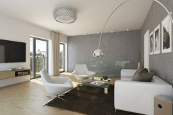 The equipment of the apartments meets the highest standards. Wooden windows and patio doors with triple glazing in anthracite colour and thermally insulated wooden roof windows with double glazing. In the living rooms there is a wooden multi-layer glued floor combined with elegant 60x60 tiles in two standards (Villeroy & Boch grey, Abitare anthracite imitation concrete). Ceramic wall tiles in the bathrooms also in two standards (30x60 Villeroy & Boch white, 60x60 Abitare grey imitating natural concrete).