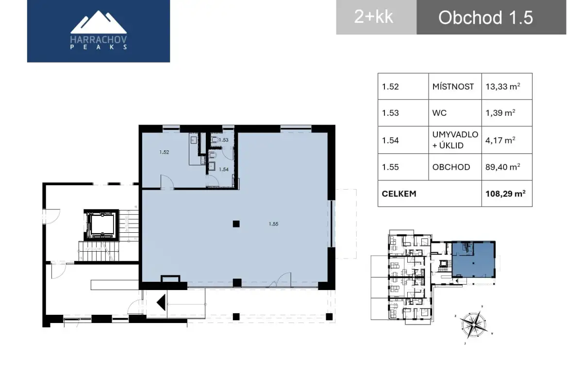 We offer a stylish fully glazed commercial space in the Harrachov Peaks project - with access from the street and within walking distance to the centre of Harrachov. The luxury project has 16 apartments with views of the slopes of the Black Mountains, a spa with sauna and jacuzzi and a fully equipped fitness room. Commercial space is located in the larger part of 1. NP with access from the street, to which the space is fully glazed and visible from the main Harrachov driveway, just slightly away and in pleasant immediate green surroundings. Directly below the project is the popular Harrachov restaurant Terassa. The usable area of the space is 108.3 m2 and most of it is now open space, in the rear there is a small office with sanitary facilities (see attached plan). The space is ideally suited for sales activities, possibly for a café with fresh snacks (in which case appropriate modifications are required) and more. For more information, please contact our office.