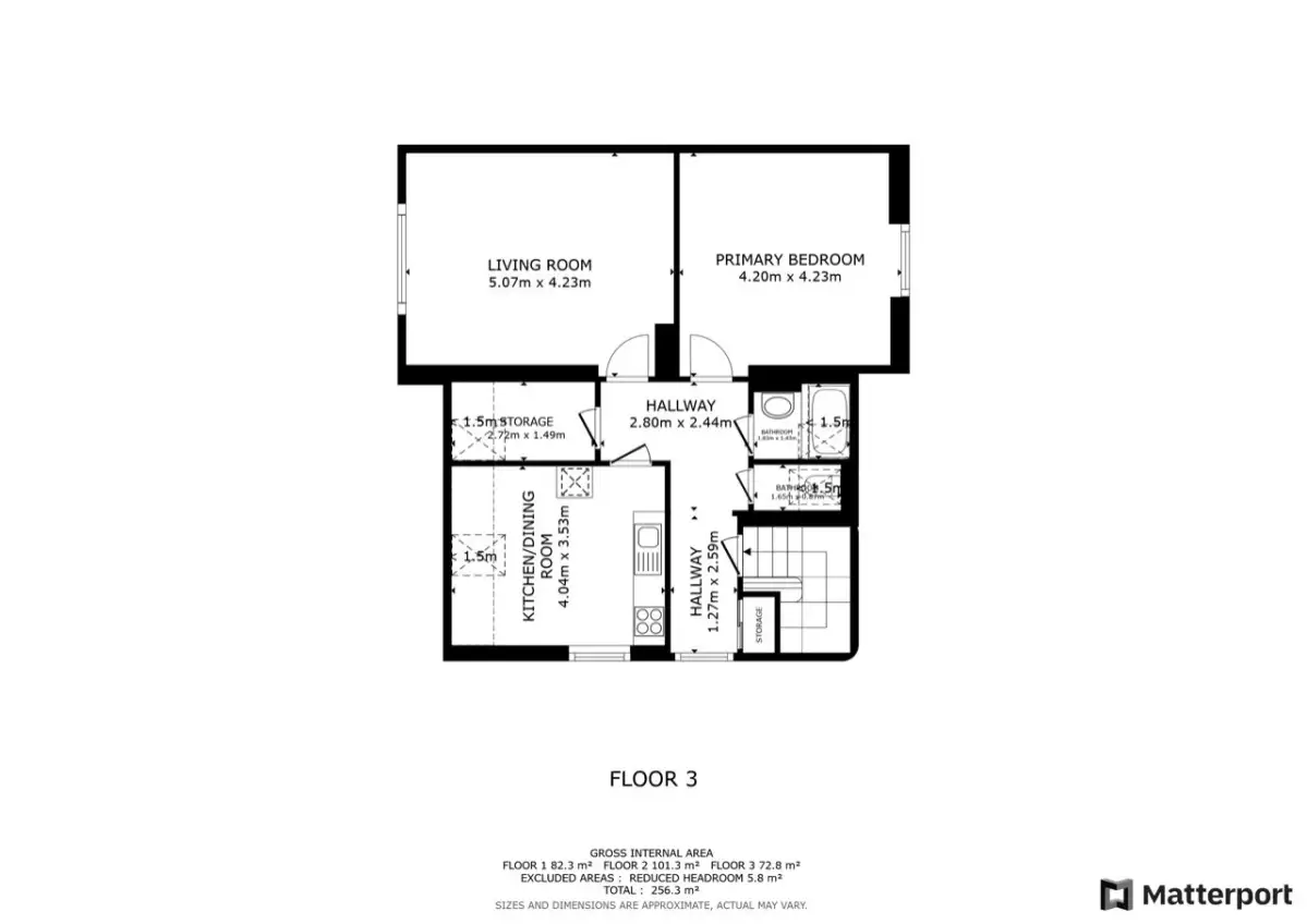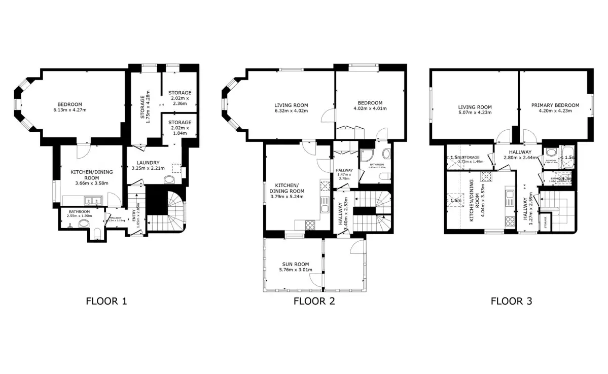 The house has three above-ground floors connected by an internal staircase, each of which currently serves as a separate residential unit.