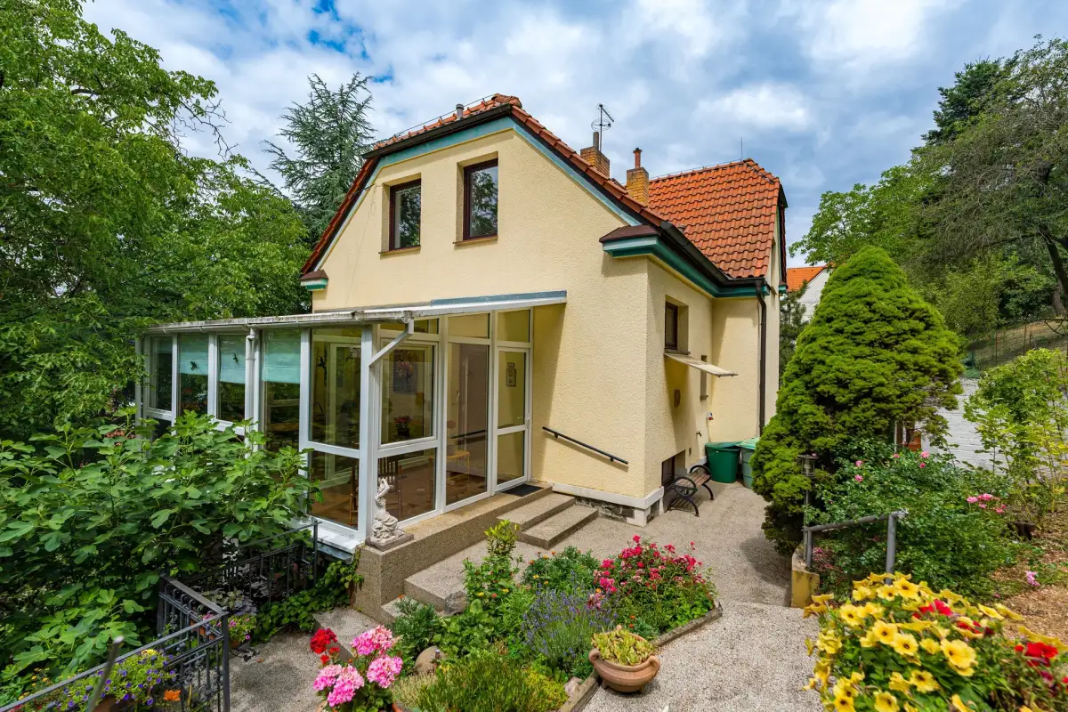 We offer for sale a three-story villa from the 1930s in a quiet part of Prague - Modřany. The villa with a beautiful garden with mature trees ensures maximum privacy and breathtaking views of the surrounding area. The villa stands on a sloping plot of 1,644 m² and offers a floor area of 239 m².