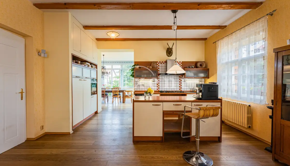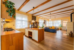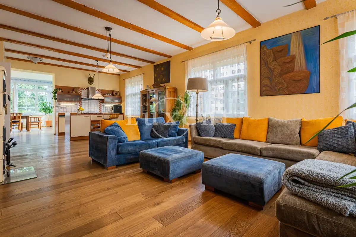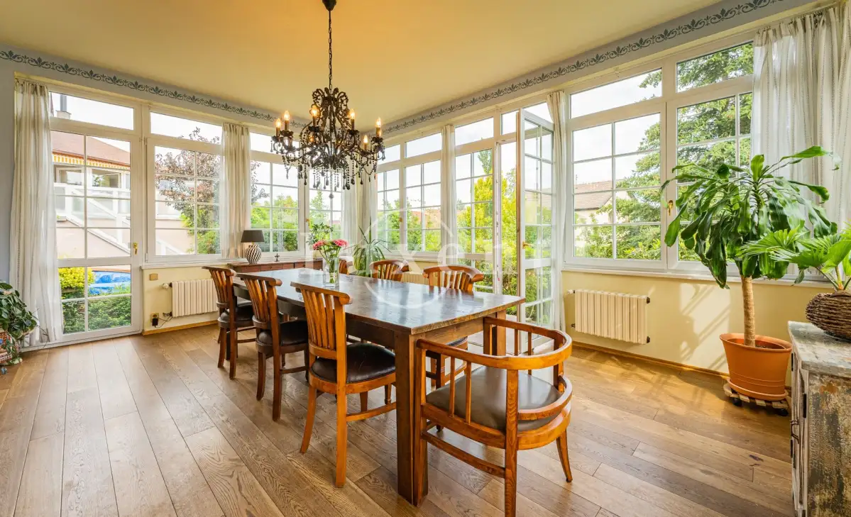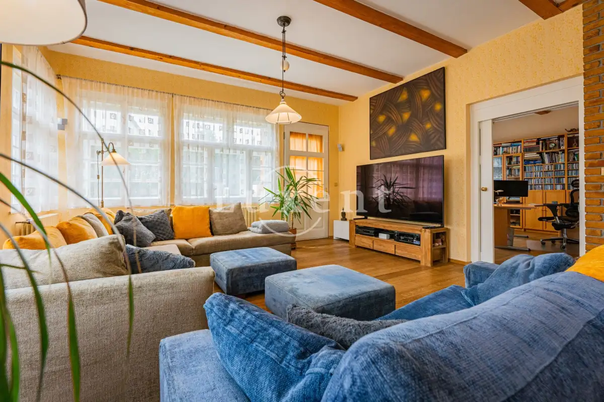 We offer for sale a First Republic four-storey villa built in 1922. In 2001 it underwent a complete reconstruction by architect and expert of the First Republic architecture David Vávra. With humor, he called this unique architecture ‘rustic cubism’, or even better ‘baráčnice-jurkovičovské wooden art deco’. The dominant cubist facade of the ground floor is complemented by a wooden gable with a porch, which bear elements of a folk architecture. Its extension to the dining room from 2001 respects the style and material of the original building, acting as if it were part of the original architectural plan. During the reconstruction, all valuable architectural and interior elements were consistently preserved, top and above-standard materials were used. This extraordinary reconstruction was often published in professional magazines and television programs about housing.