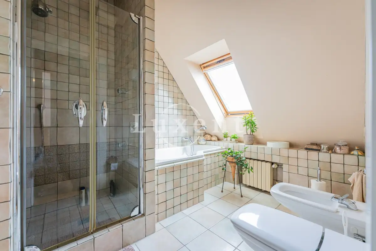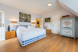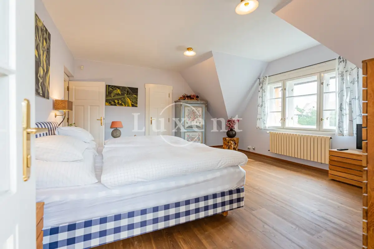 On the second floor there are three bedrooms, two bathrooms and two dressing rooms, in the air-conditioned attic there are three more rooms.