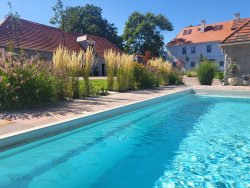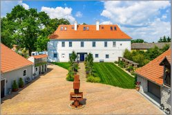 The sale includes the historic castle building with five bedrooms and stylishly furnished interiors, two boutique apartments in a separate building, an outdoor heated counter-current pool, a private pond surrounded by a park, and a water house ideal for summer accommodation. The complex also includes a castle barn with a capacity of up to 70 seats, which has been precisely adapted for hosting various events such as celebrations, vernissages, lectures, and concerts. There is also a separate garage for four cars, a French herb and flower garden with ornamental ponds, a romantic pergola rose garden, and a courtyard decorated with a central artistic sculpture.