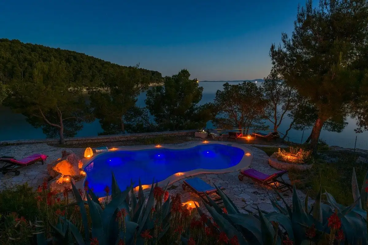 We offer for sale a unique villa located on the Croatian island of Brač, right by the Adriatic Sea. This property is spread over a plot of 2,700 sqm, surrounded by cascading Mediterranean gardens with olive trees, pine trees, lavender, and rosemary. The villa is situated in a quiet and secluded location, ensuring maximum privacy and the opportunity to enjoy beautiful views of the sea and the islands of Hvar and Vis.