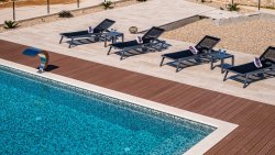 The outdoor area, with a total area of 1,200 m², is completely fenced and carefully maintained. There is an infinity pool with an area of 44 m², complemented by a whirlpool. The courtyard also has parking spaces for two vehicles. In front of the villa is a large olive grove with an area of 3,499 m².