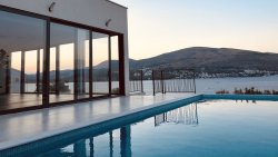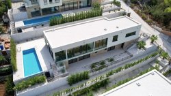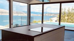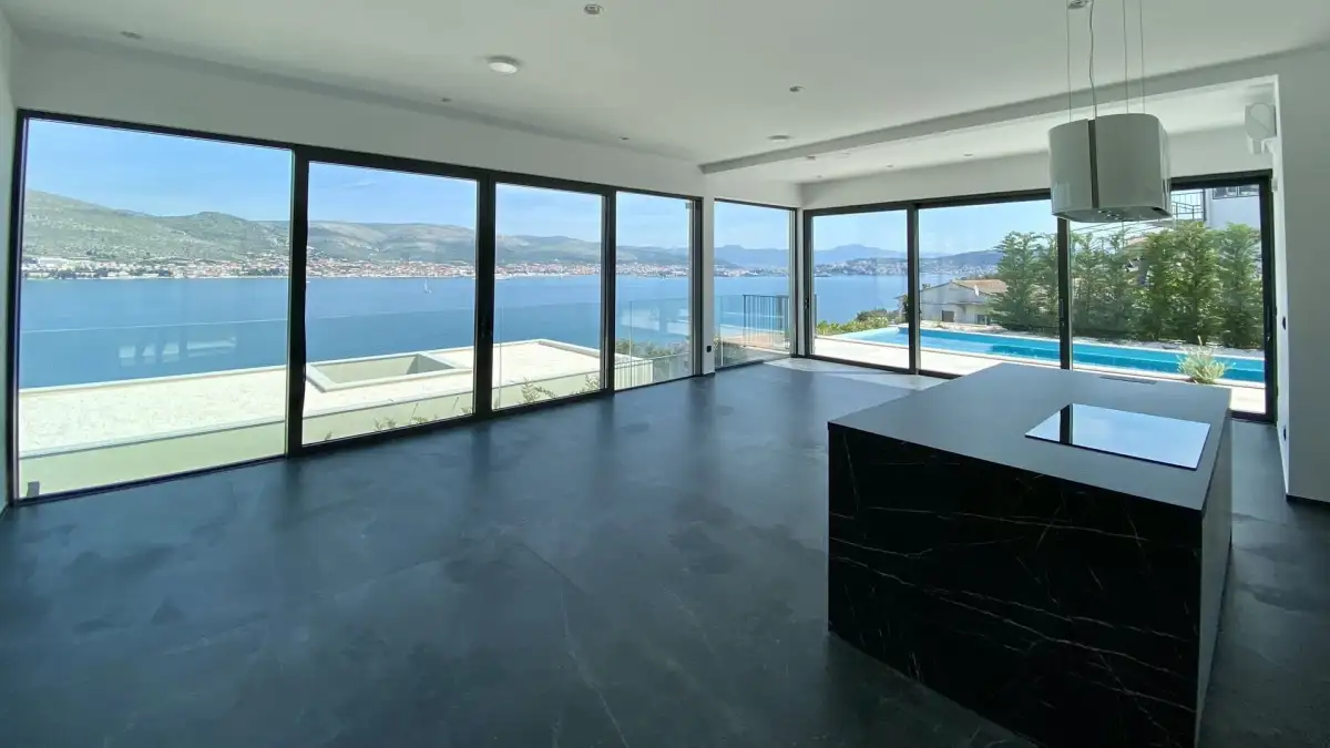 We offer for sale an elegant modern villa with a heated pool and stunning views of the Adriatic Sea, located just 100 meters from the coast in one of the most sought-after parts of the island of Čiovo in Dalmatia, Croatia. The property is situated in a quiet location with excellent access to the historic center of Trogir and Split International Airport, offering the perfect balance between privacy, comfort, and infrastructure.
