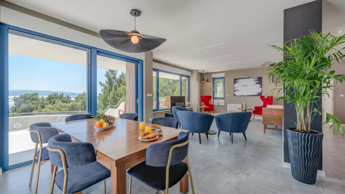 The Makarska Riviera is one of the most sought-after areas in Croatia and connects the Biokovo Mountains with the turquoise Adriatic Sea, offering an ideal environment for relaxation and an active lifestyle. The villa is situated in a quiet location with excellent access to the centre of Makarska, where all amenities are located - restaurants, shops, cafes and the marina. Thanks to the fast connection to the main roads, it is possible to comfortably reach the Split airport, which is approximately 90 minutes away.