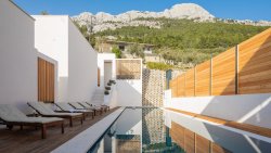 On top of the villa is a 93 m² roof terrace, where there is a fully equipped summer kitchen with gas grill, stone sink, mini fridge, ice maker, dining table and seating for social moments. From here you have an unobstructed panoramic view of the sea and the surrounding islands of Brac, Hvar and Korcula.
