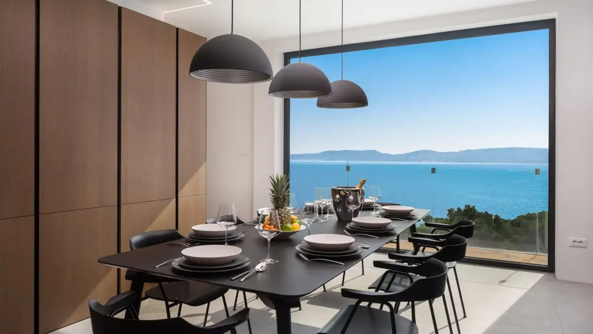 We offer for sale a luxury villa with breathtaking views of the open sea in one of the most attractive areas of the Dalmatian coast, just a few kilometers from the popular resort of Omis. The place is famous for its unique landscape, picturesque beaches, pine forests and a wide range of activities - from adrenaline-packed rafting on the Cetina River, to relaxed sailing, hiking or exploring the historic streets of the town.