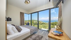 The second floor offers four bright bedrooms with en-suite bathrooms. Large glass walls provide breathtaking views of the surrounding countryside. The villa also has a roof terrace with panoramic sea views and an outdoor children's playground.