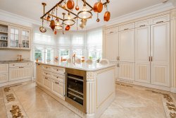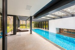 The house has a two-story basement. The first basement level features a wellness zone that offers maximum comfort and space for relaxation and active recreation. It includes a 25-meter indoor outdoor pool, a sauna, and a modern fitness center. This level also houses a laundry room and the home’s utility and storage facilities. The second basement level features a wine cellar.