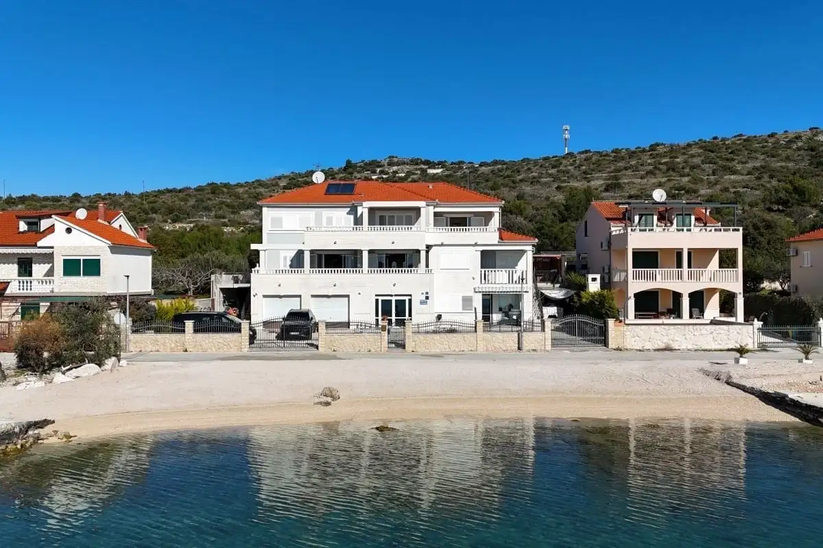 The property is situated in the first row by the sea, in close proximity to the coast, and offers unobstructed panoramic views of the blue waters of the Adriatic and the typical Dalmatian landscape.