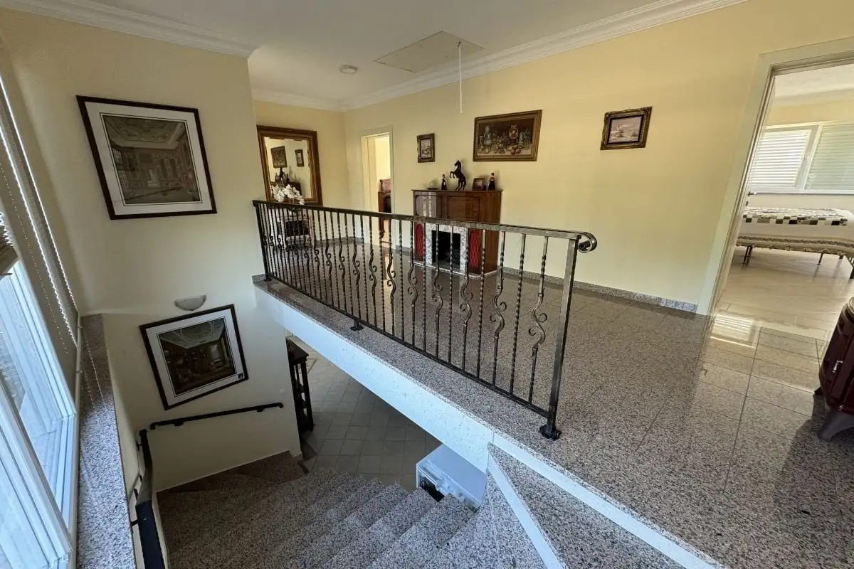 The villa is spread over a basement, ground floor, and first floor and has a total gross living area of 614 m². It is located on a plot of 760 m² and its well-thought-out layout allows for comfortable family living, multi-generational use, or a combination of personal use and tourist rental.