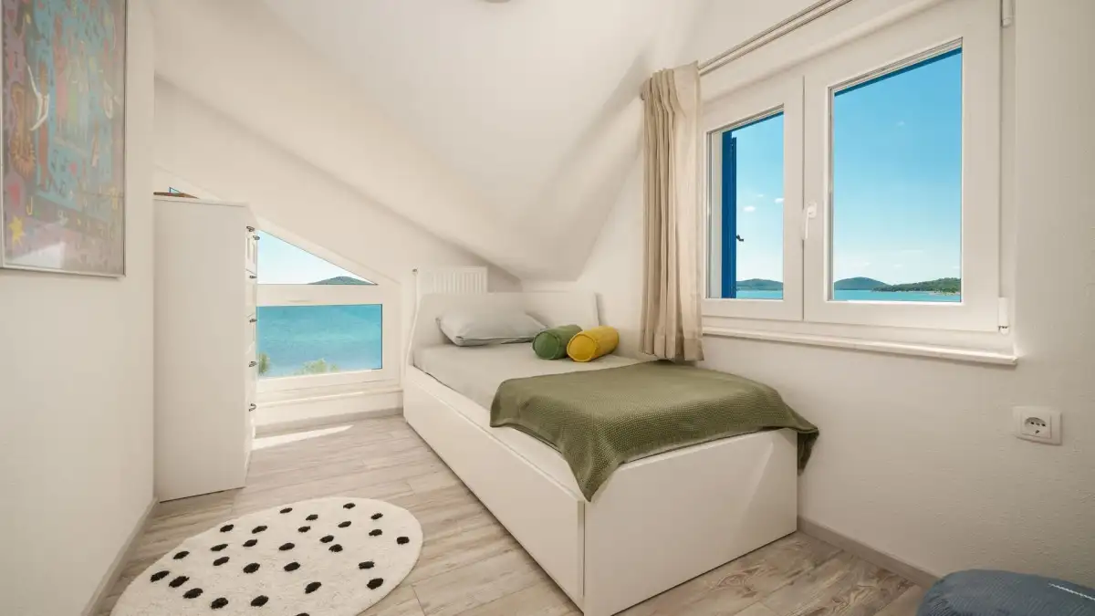 The whole house is tastefully furnished and fully equipped, and is being sold as is - ready for immediate use with no further investment required. In front of the house there is a beach and a spacious concrete berth for several boats, which the owners have built and renovated themselves. Thanks to this, the house offers a unique comfort for lovers of the sea and boat life, while the berth is used exclusively by the owners of this property.