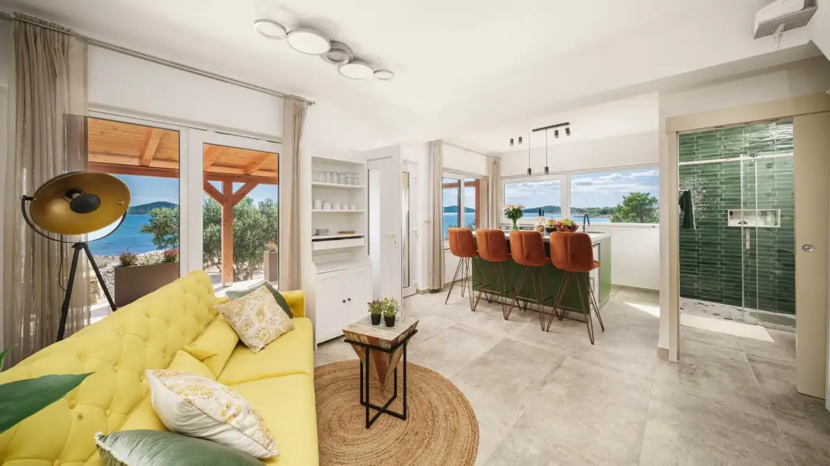 We offer for sale a unique house right by the sea, situated in the first row on the beach, in total privacy and in direct contact with nature. This exceptional property, harmoniously set in the surrounding landscape, is built in a combination of traditional Dalmatian and modern style, creating an authentic yet comfortable atmosphere for living and recreation.