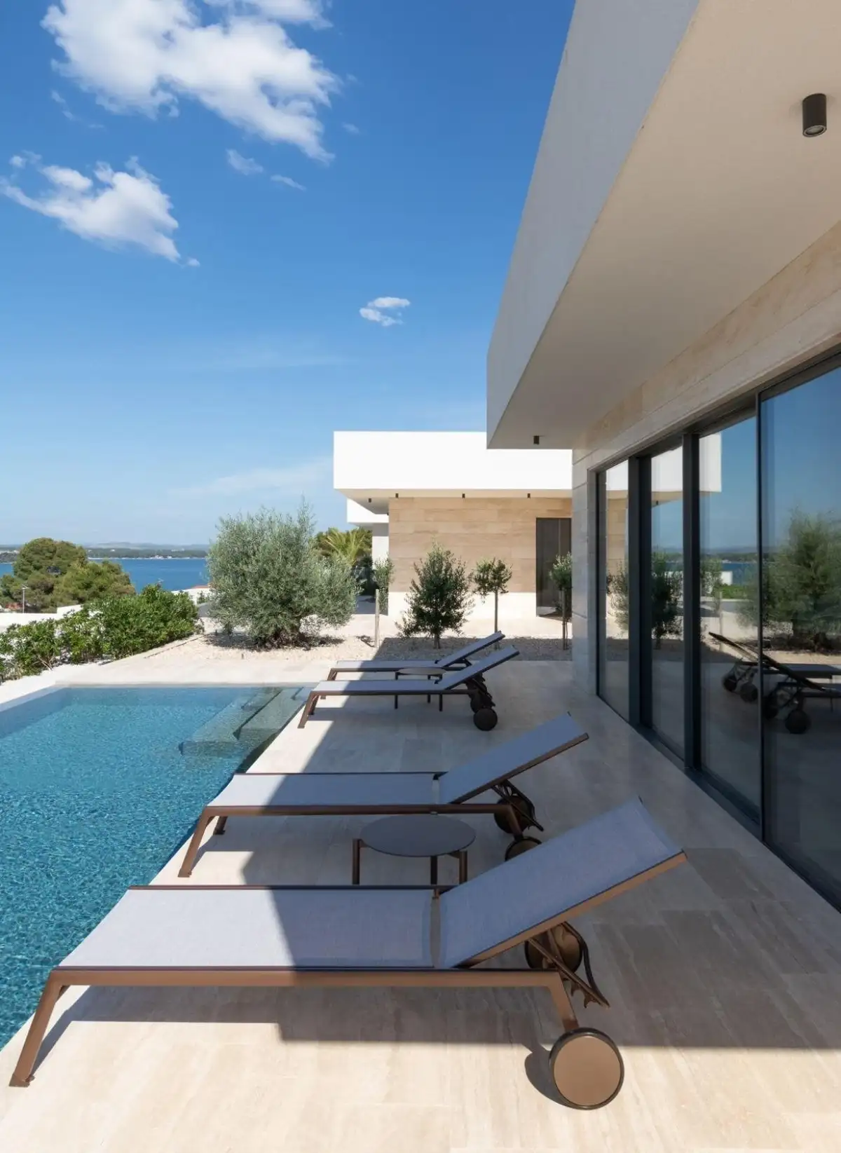 We are offering for sale a modern, fully equipped villa located in the town of Tkon on Pašman Island, which is connected by a bridge to Ugljan Island, across from Zadar. This property presents an ideal opportunity for those seeking stylish living in a peaceful setting with a sea view, while still being easily accessible from the mainland – the ferry from central Zadar takes only ten minutes.