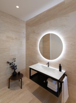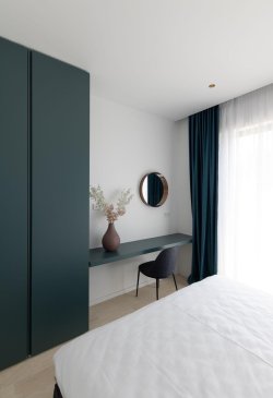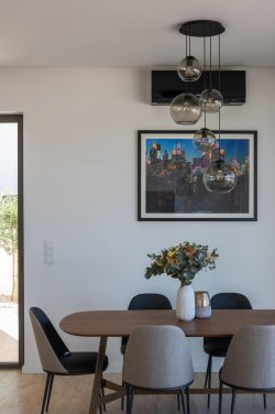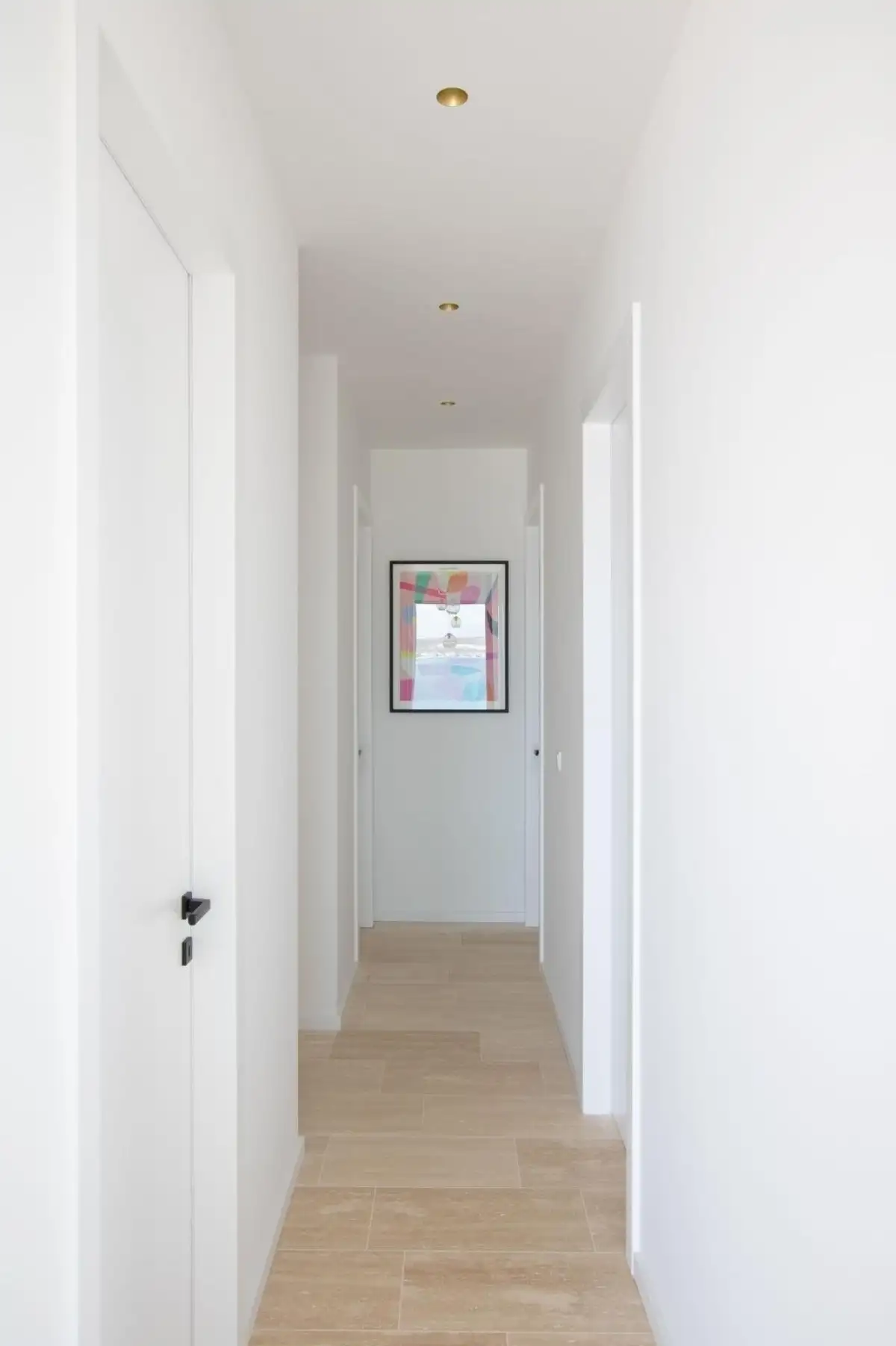 The 130 sqm villa is built to a very high standard, with a focus on quality materials, furnishings, and design. The interior features three bedrooms, two bathrooms, a technical room with a washer and dryer, and a spacious living room connected to the dining area and terrace. The exterior includes an outdoor covered kitchen with a grill and an infinity pool with heating and a counter-current system, adding to the luxurious atmosphere of the entire space. The property also includes a garden with fully automatic irrigation and decorative LED lighting, featuring Mediterranean plants and fruit trees such as lemons, oranges, and mandarins.