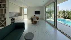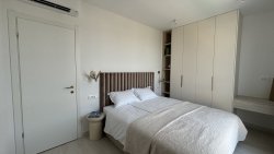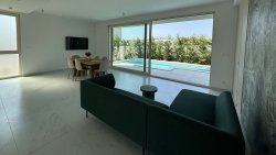On the ground floor of the villa there is a modern equipped summer kitchen with dining room and living room, pantry and bathroom. This area has direct access to the swimming pool and is strategically designed to allow communication between the outdoor space designed for relaxation and the summer kitchen. An internal staircase leads to the first floor where there is a hallway, a laundry room with private balcony and three bedrooms and two bathrooms. Throughout the upper floor there is an open plan living area and a spacious balcony with sea views.