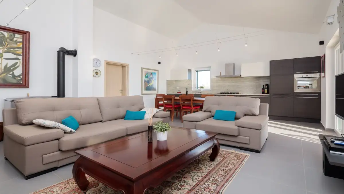 The property is situated on an extensive private plot which includes an olive grove planted in 2006, with a total of 665 olive trees, giving the new owner the opportunity for profitable olive oil production. There is also a 300 m² cellar, which houses a modern olive pressing plant. The property includes an underground water tank of 200,000 litres and a desalination plant that produces 7,000 litres of drinking water per day.