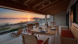 Both villas have a beautiful stone exterior, made of natural stone from Brac, and a 300 m² terrace. Two parts of the terrace are covered, with one equipped for outdoor barbecues, ideal for summer evenings. There is also a 4 × 10 m swimming pool, surrounded by outdoor furniture. The interiors of the villas are fully equipped with modern furniture, underfloor heating, and the price of the property includes all furniture and artwork.