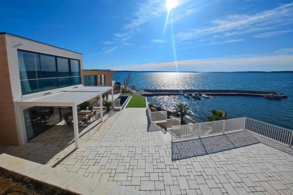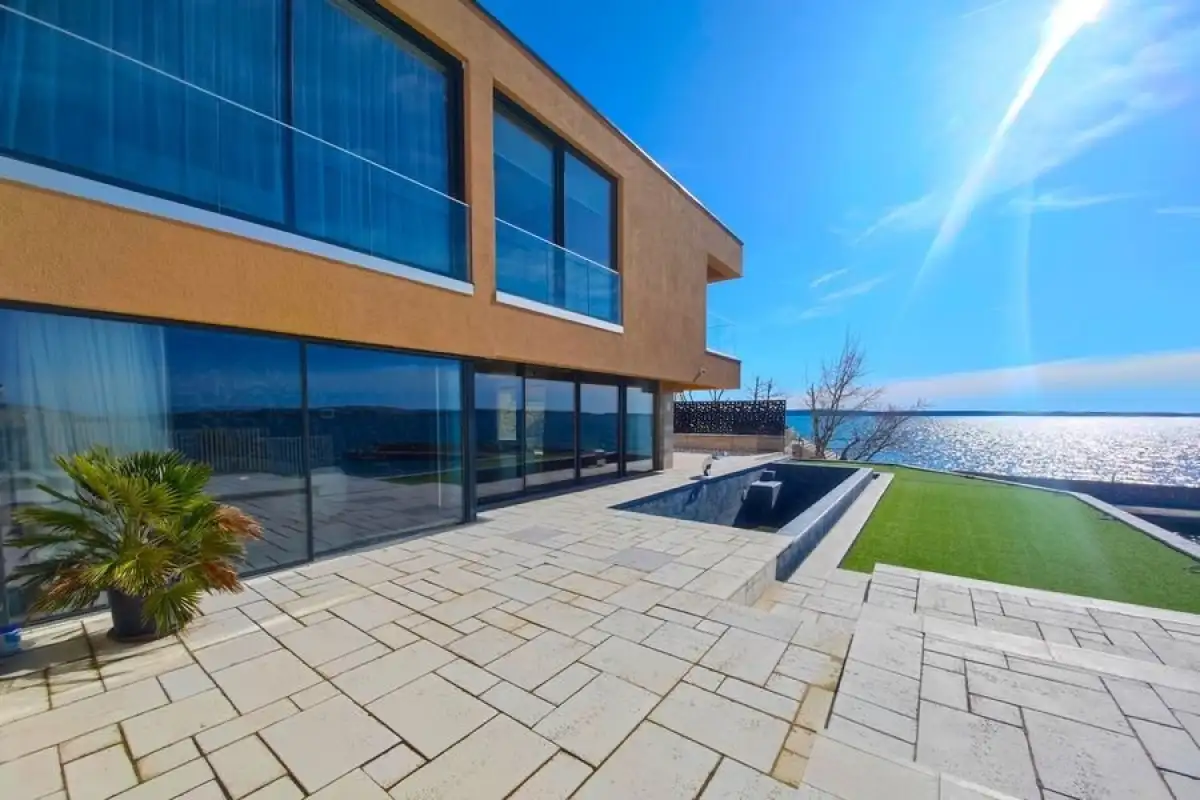 We offer for sale a designer villa in the first row to the sea in the seaside resort of Rtina, Croatia. It is located on a small peninsula in front of the island of Pag, 19 km northeast of Zadar.