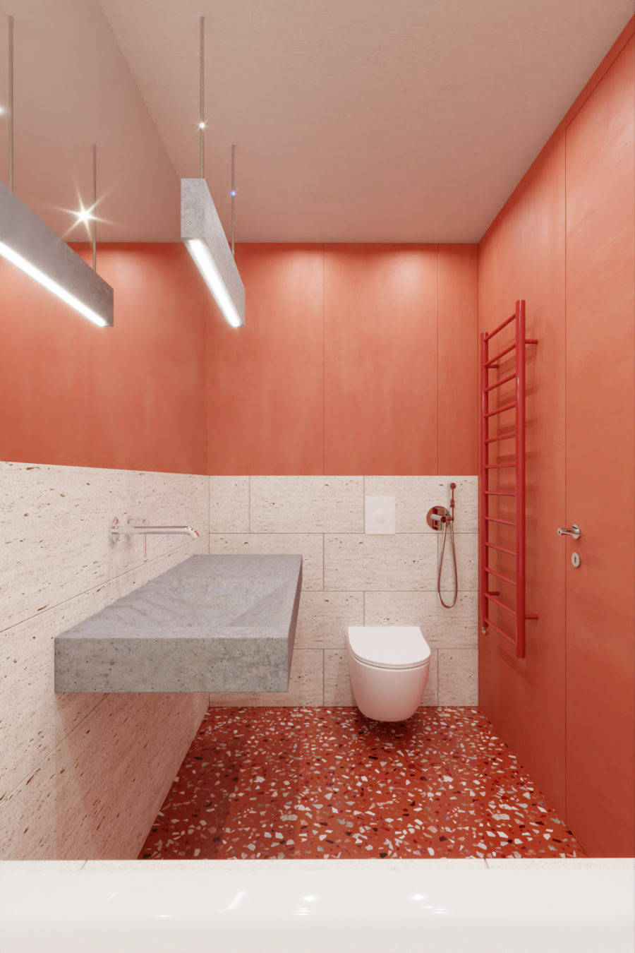 Quality materials, especially wood, were used in the construction of the luxury apartments. The living rooms are equipped with three-layer wooden parquet and seamless rubber floors. Even the large-format windows with triple glazing are either made of wood or aluminium. A touch of exclusivity is added by joinery products such as interior window sills matching the benches made of solid oak beams. The outdoor terraces are covered with exotic wood, the bathrooms with cast terrazzo, stone tiles and travertine tiles. Luxury furnishings come from Vitra and Kartell, sanitary elements from Grohe and shower enclosures with fixed glass screens or enamel baths from Kaldewei. The heating is underfloor in all rooms and is provided by a gas condensing boiler with integrated storage tank. Of course, there is also a multisplit air conditioning. The apartments are also equipped with modern technology, including a video intercom with a colour touchscreen or a fibre-optic connection with a data socket in each living room.