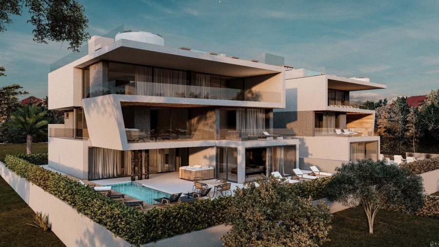 For those who are truly captivated by Zadar, we offer an exclusive sale of a 4 bedroom apartment in a newly built development project. This luxurious property with a total area of 240 m2 is located on the second floor of the building and includes three bedrooms with en-suite bathrooms, a spacious dressing room and an open living area with kitchen and dining room, which leads to a terrace with spectacular sea views. In addition, there is a second roof terrace with swimming pool.