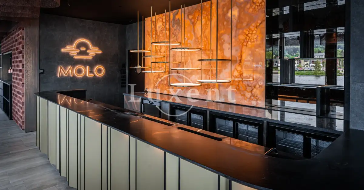 Na mole byla nově otevřena restaurace MOLO Restaurant a cocktailový MOLO Bar & Grill nad hladinou jezera. MOLO Restaurant vás ohromí svým stylem a výhledy na okolní jezero, ale také úrovní gastronomie a špičkového servisu. Svou klidnou atmosférou vybízí k delšímu posezení a k vychutnání degustačního menu šéfkuchaře Davida Šaška.