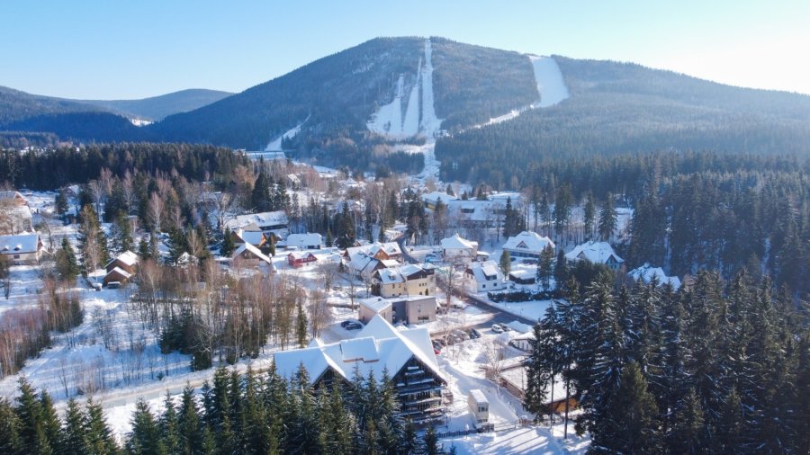 Projekt vyrostl v oblíbeném horském centru Harrachov na okraji Krkonošského národního parku, který skýtá bohaté vyžití v létě i v zimě. Moderní středisko poskytuje skvělé podmínky pro lyžování, snowboarding, běžkování, ale i pro golf, cykloturistiku či další outdoorové aktivity. Mezinárodního věhlasu dosáhlo město jedním z pěti světových můstků pro lety na lyžích.