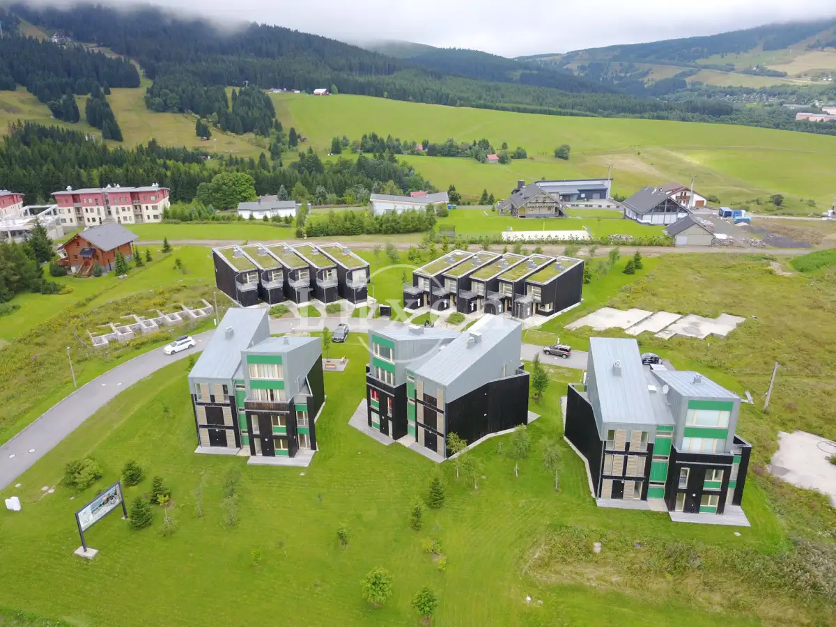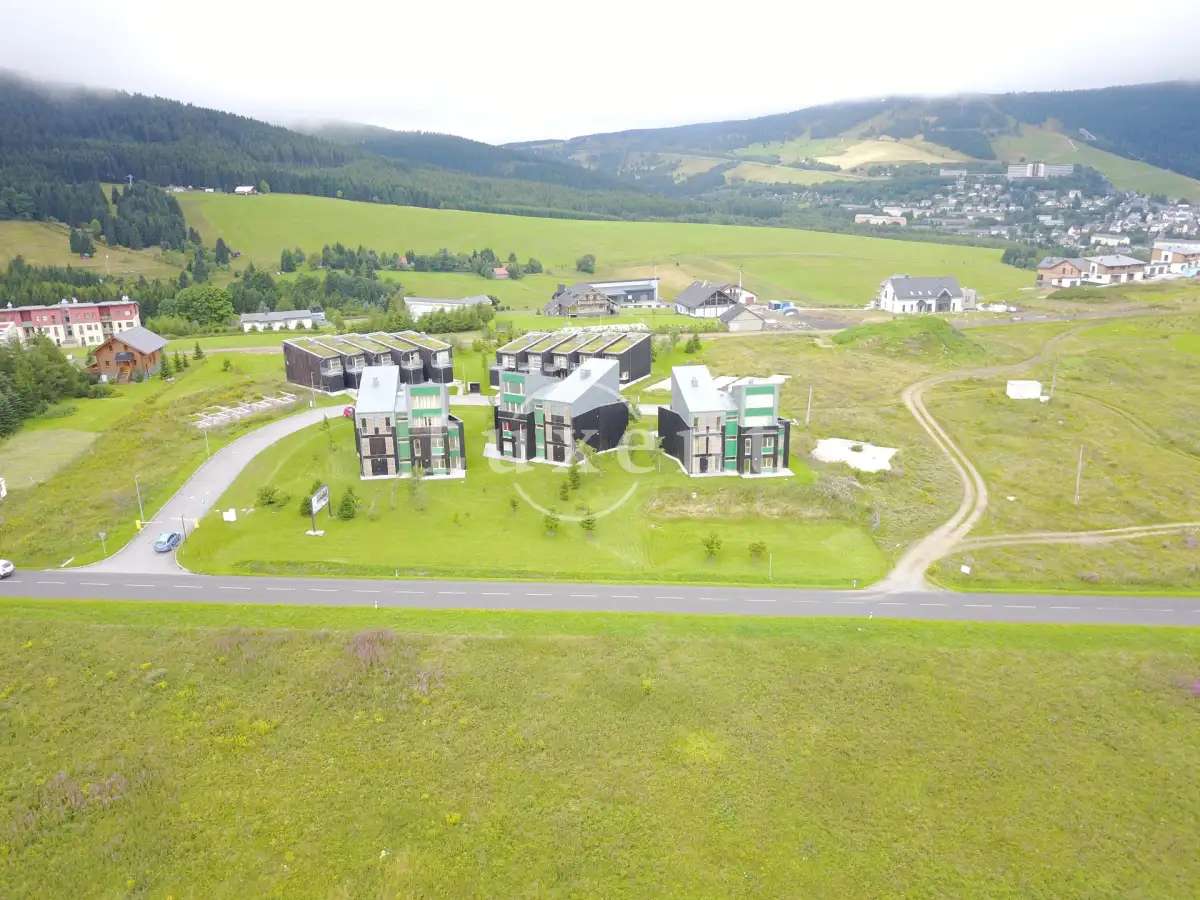 Ve vzdálenosti 200 m od sjezdovek jsou k dispozici jsou na prodej řadové domky, studia, apartmány i jeden velkoryse pojatý mezonet s velkoplošným oknem disponujícím nádherným výhledem na Klínovec.