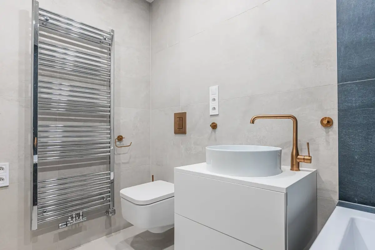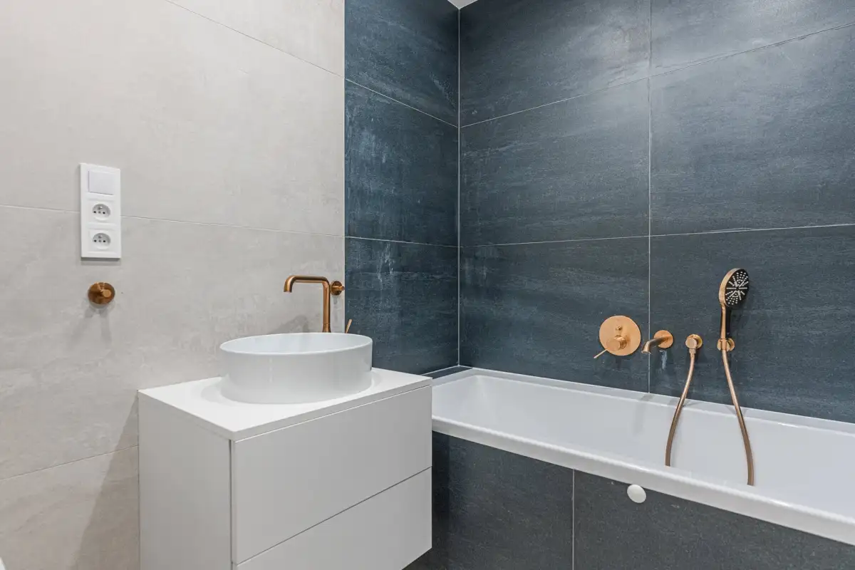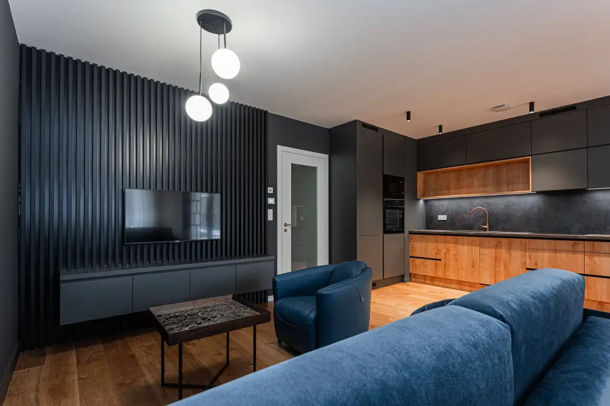 Fotografie s vybavením znázorňují možné řešení bytu v dispozici 1-2+kk, jedná se o vzorový byt 1.3.