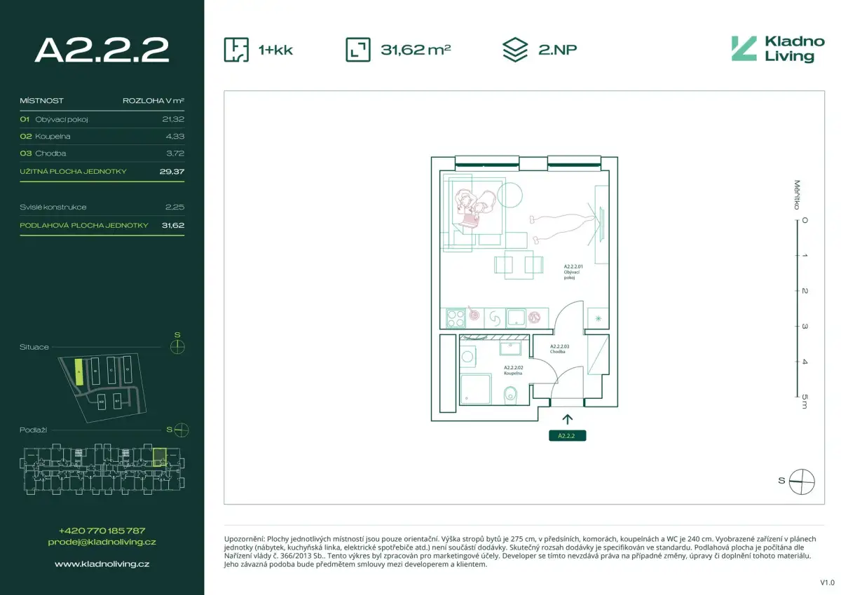 Nabízíme ke koupi moderní byt 1+kk o podlahové ploše 31,6 m² v rezidenčním projektu Kladno Living, který vzniká v jedné z nejatraktivnějších lokalit města Kladno – Kročehlavy. Tento nový developerský projekt představuje jedinečnou příležitost pro ty, kteří hledají nové byty v Kladně nebo investici do nemovitosti s vysokým potenciálem zhodnocení.
