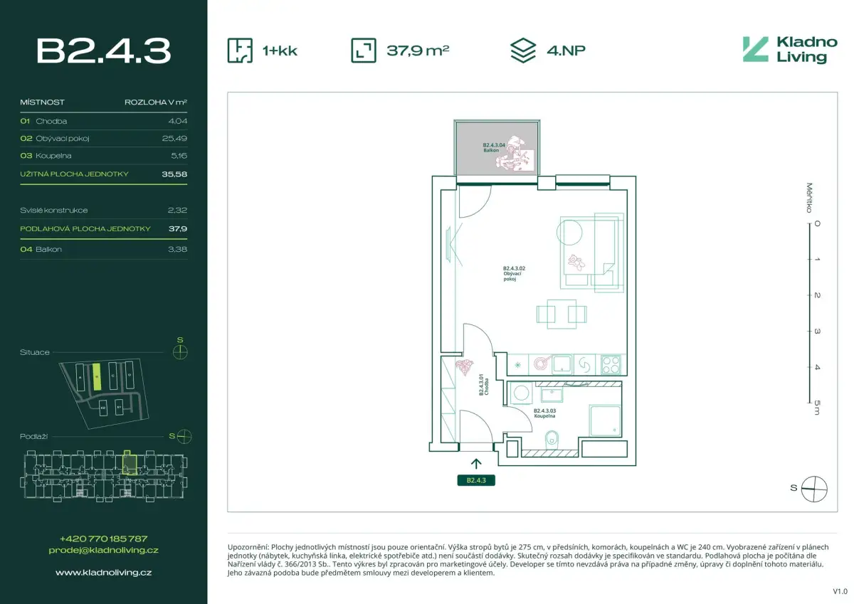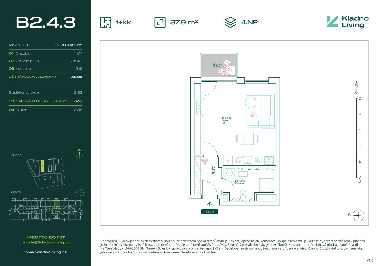 Nabízíme ke koupi moderní byt 1+kk o podlahové ploše 37,9 m² s balkonem 3,4 m² v rezidenčním projektu Kladno Living, který vzniká v jedné z nejatraktivnějších lokalit města Kladno – Kročehlavy. Tento nový developerský projekt představuje jedinečnou příležitost pro ty, kteří hledají nové byty v Kladně nebo investici do nemovitosti s vysokým potenciálem zhodnocení.