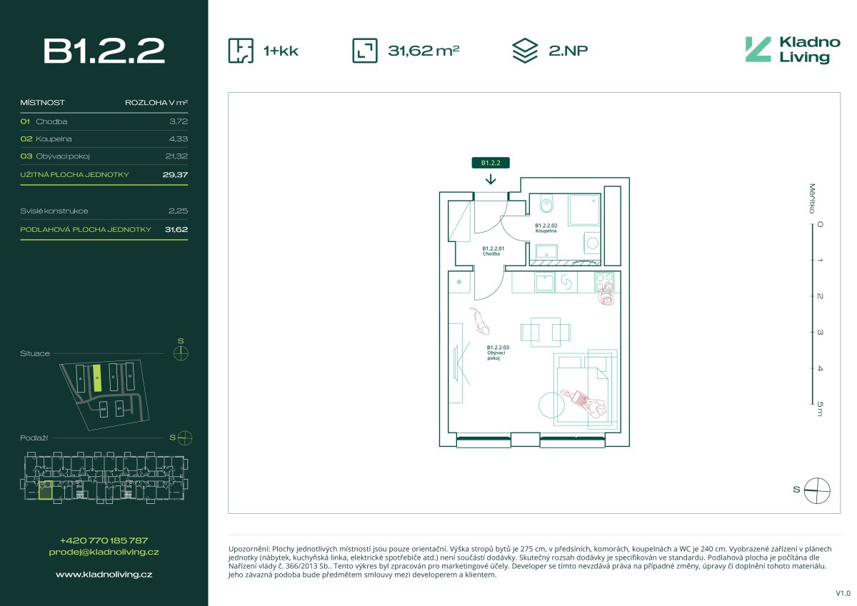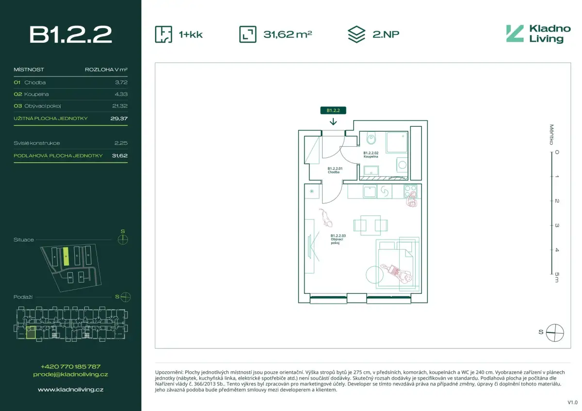 Nabízíme ke koupi moderní byt 1+kk o podlahové ploše 31,6 m² v rezidenčním projektu Kladno Living, který vzniká v jedné z nejatraktivnějších lokalit města Kladno – Kročehlavy. Tento nový developerský projekt představuje jedinečnou příležitost pro ty, kteří hledají nové byty v Kladně nebo investici do nemovitosti s vysokým potenciálem zhodnocení.