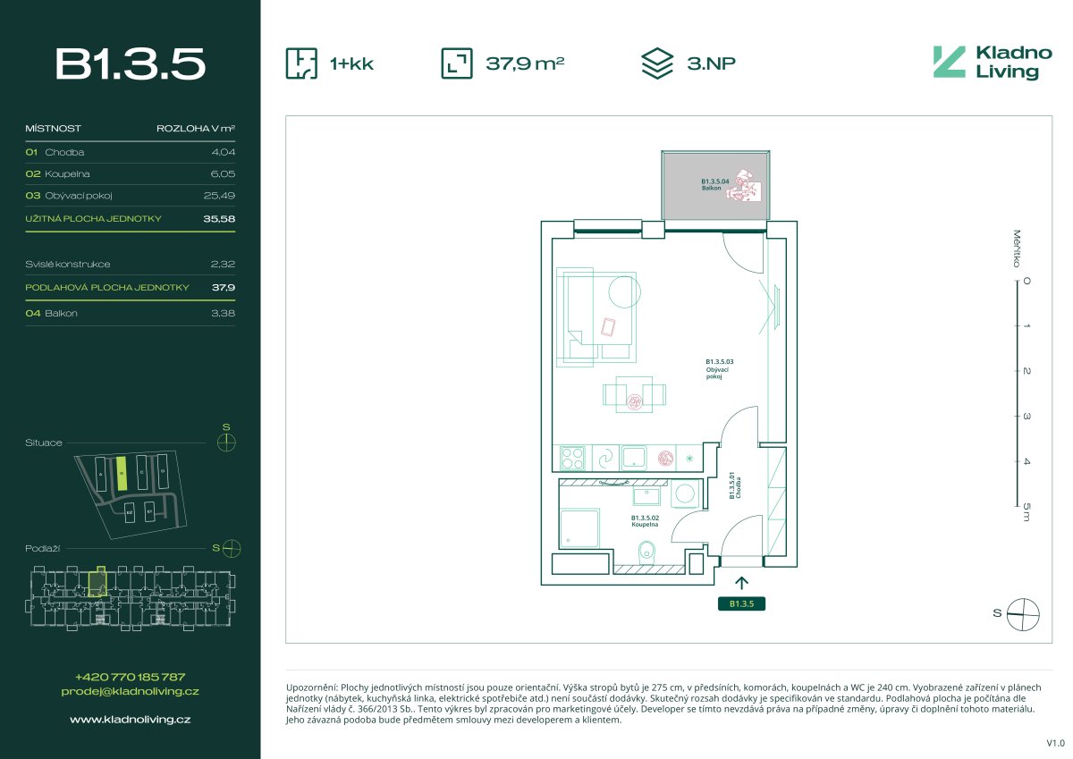 Nabízíme ke koupi moderní byt 1+kk o podlahové ploše 37,9 m² s balkonem 3,4 m2 v rezidenčním projektu Kladno Living, který vzniká v jedné z nejatraktivnějších lokalit města Kladno – Kročehlavy. Tento nový developerský projekt představuje jedinečnou příležitost pro ty, kteří hledají nové byty v Kladně nebo investici do nemovitosti s vysokým potenciálem zhodnocení.