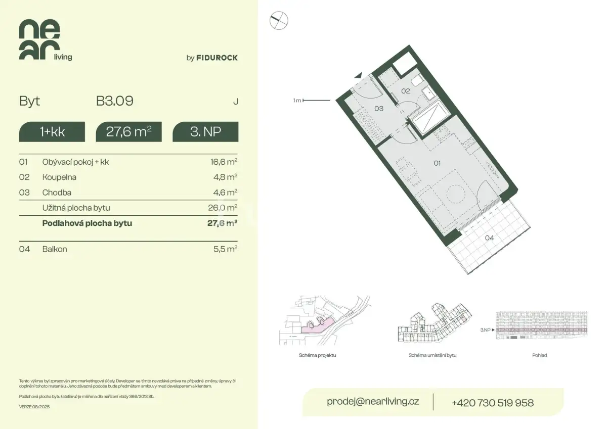 | NL-B308 | 1+kk | 2. patro | 26 m2 | 28 m2 | Ne / 5 m2 / Ne | Ne | Prodáno | Detail |