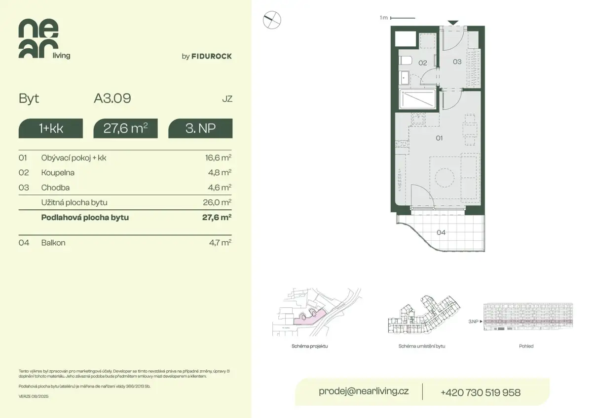 | NL-A304 | 1+kk | 2. patro | 26 m2 | 28 m2 | Ne / 3 m2 / Ne | Ne | Prodáno | Detail |
