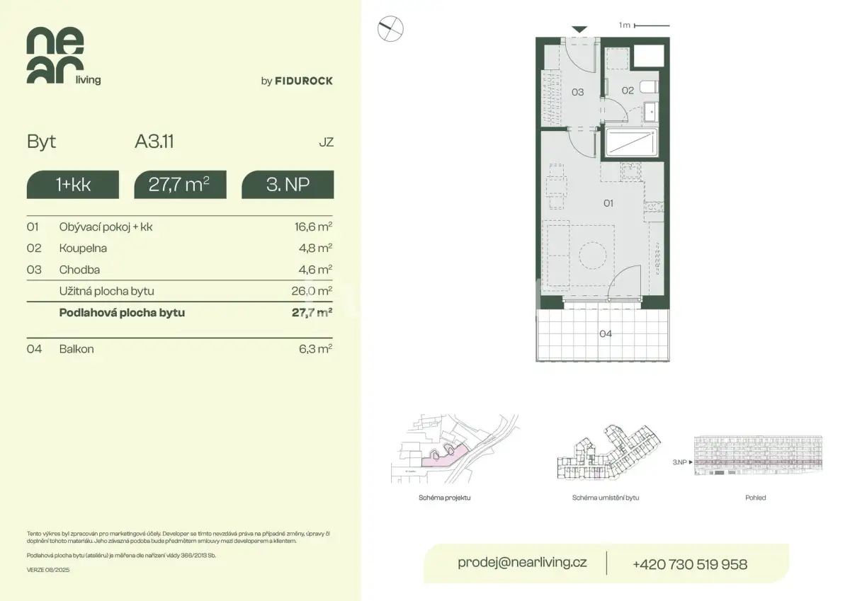 Nabízíme k prodeji byt 1+kk o podlahové ploše 27,7 m² s balkonem 6,3 m² v developerském projektu NEAR living v Praze 8, vznikajícím na pomezí Palmovky a Karlína.