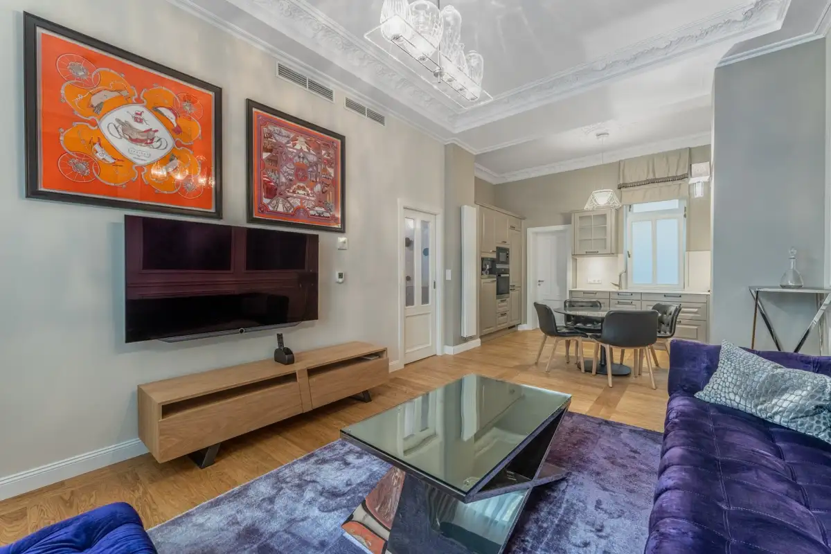 Nabízíme luxusně vybavený designový apartmán „Amethyst“ v nově zrekonstruovaném historickém domě Rubin Palace, v srdci Karlových Varů, ve Vřídelní ulici na lázeňské kolonádě. Jedná se o byt ve 3. patře tohoto atraktivního rezidenčního domu s výtahem. Dispozice 2+kk je rozložena na podlahové ploše 61,7 m2.