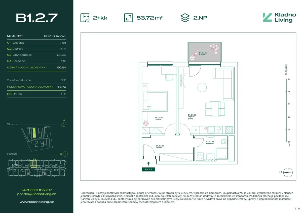 Nabízíme ke koupi moderní byt 2+kk o podlahové ploše 53,7 m² s balkonem 3,8 m² v rezidenčním projektu Kladno Living, který vzniká v jedné z nejatraktivnějších lokalit města Kladno – Kročehlavy. Tento nový developerský projekt představuje jedinečnou příležitost pro ty, kteří hledají nové byty v Kladně nebo investici do nemovitosti s vysokým potenciálem zhodnocení.